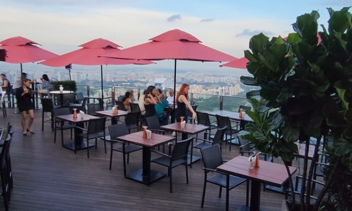 This is the rare rooftop that gives you two horizons: ocean and city. Located atop The Outpost Hotel in Sentosa, 1-Altitude Coast is modern, airy, and built for golden-hour moments. The infinity pool reflects the sunset, while the open terrace offers plenty of space for both ceremonies and after-parties.